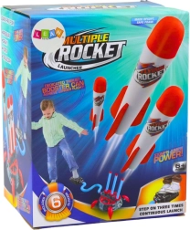Einfach die Raketen auf die Basis setzen und die Pumpe zum Starten treten.