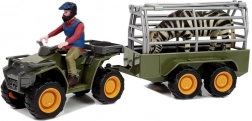 Quad, abnehmbarer Anhänger/Transportbox mit öffnender Heckklappe, Fahrerfigur, Zebra-Figur