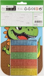 Dieses Kreativ-Set eignet sich ideal für schnelles und unterhaltsames Basteln. Folgen Sie einfach den Farben auf der Vorlage und kleben Sie die metallischen Schaumstoff-Quadrate auf die richtigen Felder. Das Ergebnis ist ein schönes, glänzendes Dinosaurier-Mosaik, geeignet zum Ausstellen oder als originelles Geschenk.