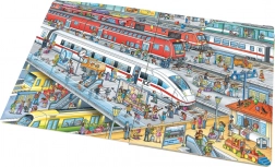 Dieses große Bilderbuch begeistert alle kleinen Zugfans. Auf reichhaltigen, sorgfältig ausgearbeiteten Illustrationen blicken Kinder der Eisenbahnwelt ganz nah über die Schulter – von Lokomotiven und Waggons über geschäftige Bahnhöfe bis hin zu ruhigen Landstationen. Jede Seite ist voller kleiner Details und Figuren, die Kinder suchen können, um gemeinsam deren Geschichten zu erleben.