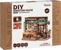 Die Miniatur des Tipsy Restaurant Hauses bietet Teile aus Holzpuzzle, die ohne Kleber sicher ineinander greifen. Erstellen Sie eine einzigartige Dekoration, die jedem Interieur Charme verleiht.