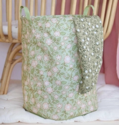 Dekorativer Aufbewahrungskorb für Spielzeuge Blumen auf Salbeigrün