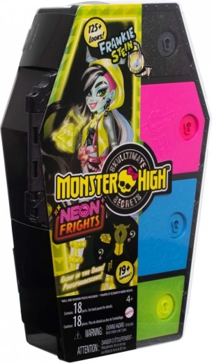 Öffne Frankies elektrisierenden Spind und tauche in die neonbunte Welt von Monster High ein. Dich erwarten vier Schlüssel mit Color Reveal-Effekt, geheime Fächer voller Accessoires und ein Mix an Extras, die im Dunkeln leuchten. Ideal für kreatives Spielen, Sammeln und stylisches Ausstellen.