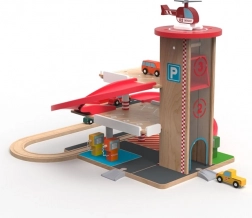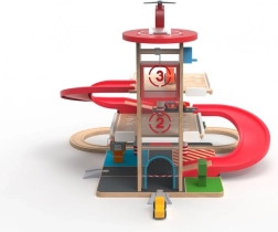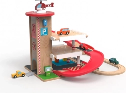 Entdecken Sie eine unterhaltsame und robuste Holzgarage mit Eisenbahnschiene, die Kindern stundenlange kreative Spielzeit bietet. Das dreistöckige Parkhaus mit Aufzug, Landeplatz für den Hubschrauber und umfangreichem Zubehör fördert Fantasie, Feinmotorik und Hand-Auge-Koordination. Enthalten sind 4 Autos, ein Hubschrauber, Tank- und E-Ladesäulen sowie Schienen für einen nahtlosen Übergang ins Spiel.