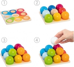 Diese Holzpyramide mit Kugeln ist ein ideales Werkzeug zur Förderung von Kinderfertigkeiten. Kinder können die Kugeln nach Farben sortieren und in verschiedenen Formen zusammenstellen, wodurch sie ihre Kreativität entwickeln. Jede Kugel zeichnet sich durch eine bunte Farbe aus, die Kinder die Vielfalt der Farben lehrt.