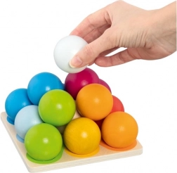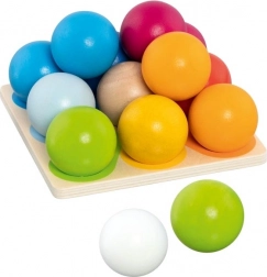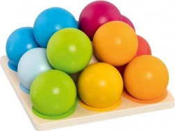 Spielzeug für kleine Entdecker! Mit vierzehn bunten Kugeln und einer Basis üben Kinder die Farbenerkennung, motorische Fähigkeiten und Geduld. Die Kugeln können sortiert, gestapelt und gerollt werden, was ihre Fantasie anregt.