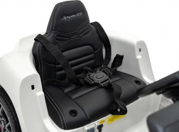 Weiche EVA-Reifen, vollständige Federung und ein Sitz aus Eko-Leder mit Sicherheitsgurten garantieren Komfort auch auf längeren Fahrten.