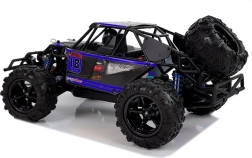 Die robuste Konstruktion mit Überrollkäfig, große Offroad-Räder und die unabhängige Federung mit gedämpften Stoßdämpfern machen dieses Fahrzeug zum idealen Begleiter für Fahrten auf Schotter, Gras und steinigen Wegen. Der Maßstab 1:18 bildet die Proportionen eines echten Buggys realistisch ab und sorgt auch bei höheren Geschwindigkeiten für hervorragende Fahrkontrolle.