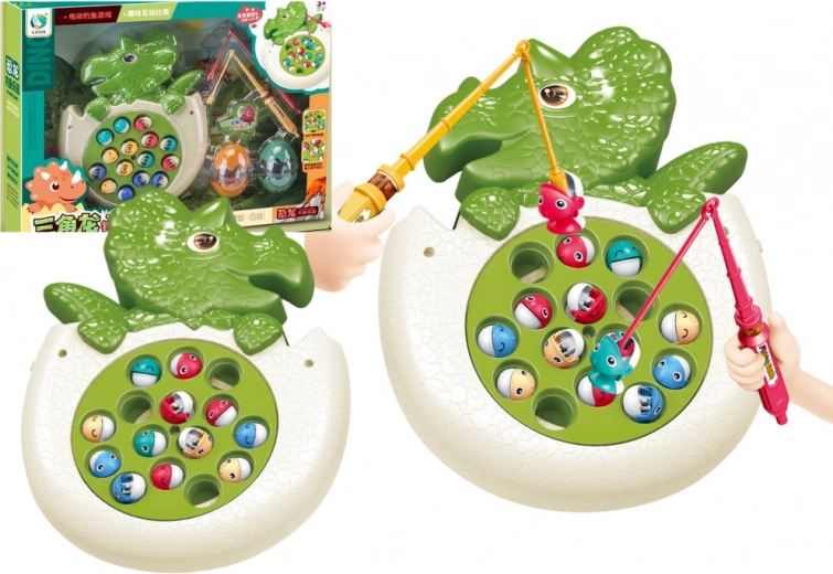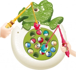 Dieses niedliche Angelspiel im grünen Design eines kleinen Dinosauriers sorgt für dynamische Action: Nach dem Einschalten dreht sich der Teich und die bunten Fische tauchen regelmäßig auf. Ziel der Spieler ist es, so schnell wie möglich einen Fisch zu fangen – großer Spaß für einen oder mehrere Spieler.