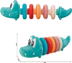 Diese niedliche Pyramide mit Krokodilkopf verbindet Spiel und Lernen. Bunte Ringe in verschiedenen Größen mit Reliefzahlen motivieren zum Sortieren, Aufstecken und Zählen und fördern so spielerisch Geschicklichkeit und logisches Denken. Die weiche Ausführung ist angenehm anzufassen und sanft zu kleinen Kinderhänden.