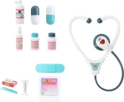 Neben dem Stethoskop umfasst das Set auch eine Injektionsspritze, Skalpelle, eine Patientenkarte und viele weitere Instrumente und Zubehörteile. Jedes Element des Sets ist sorgfältig für maximale Sicherheit und den Komfort kleiner Nutzer konzipiert.