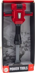 Realistischer batteriebetriebener Kinder-Presslufthammer in Rot mit Licht und Soundeffekten für kleine Tüftler. Er wird durch Betätigen des Abzugs aktiviert, fördert die Feinmotorik, Genauigkeit und logisches Denken und ist ab 3 Jahren geeignet.