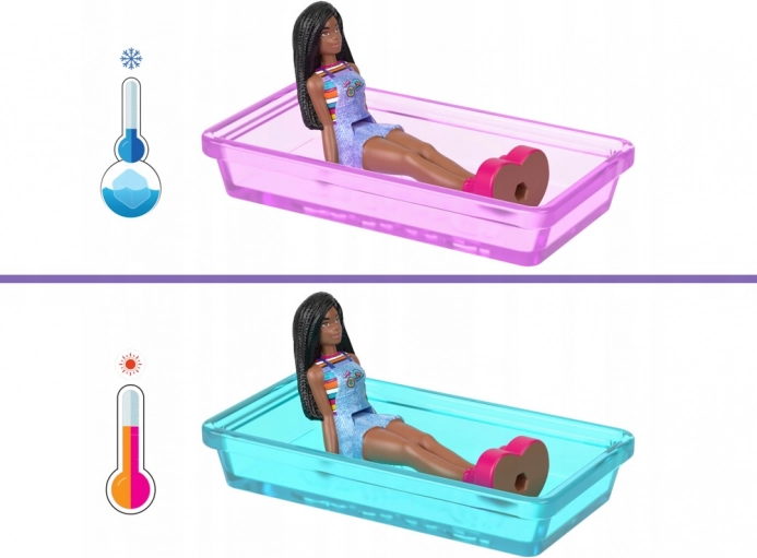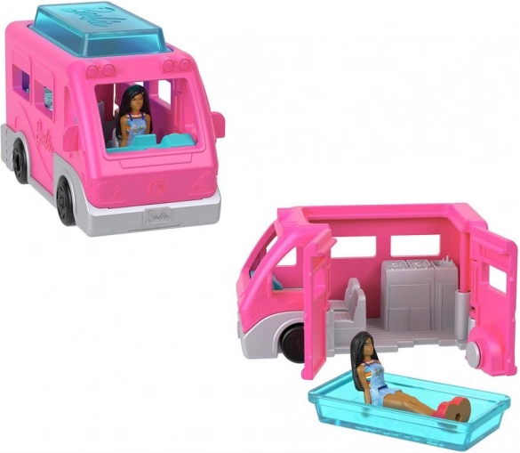 Entdecken Sie den ikonischen Reisestil im Mini-Maßstab. Der Mini-Camper BARBIE DreamCamper überrascht mit einem detaillierten Innenraum mit Küche, aufklappbaren Türen und cleverem Stauraum. Der abnehmbare Pool kann auf dem Dach befestigt werden und wechselt dank Temperatureffekt die Farbe – kaltes Wasser ändert die Farbe, warmes stellt sie wieder her.