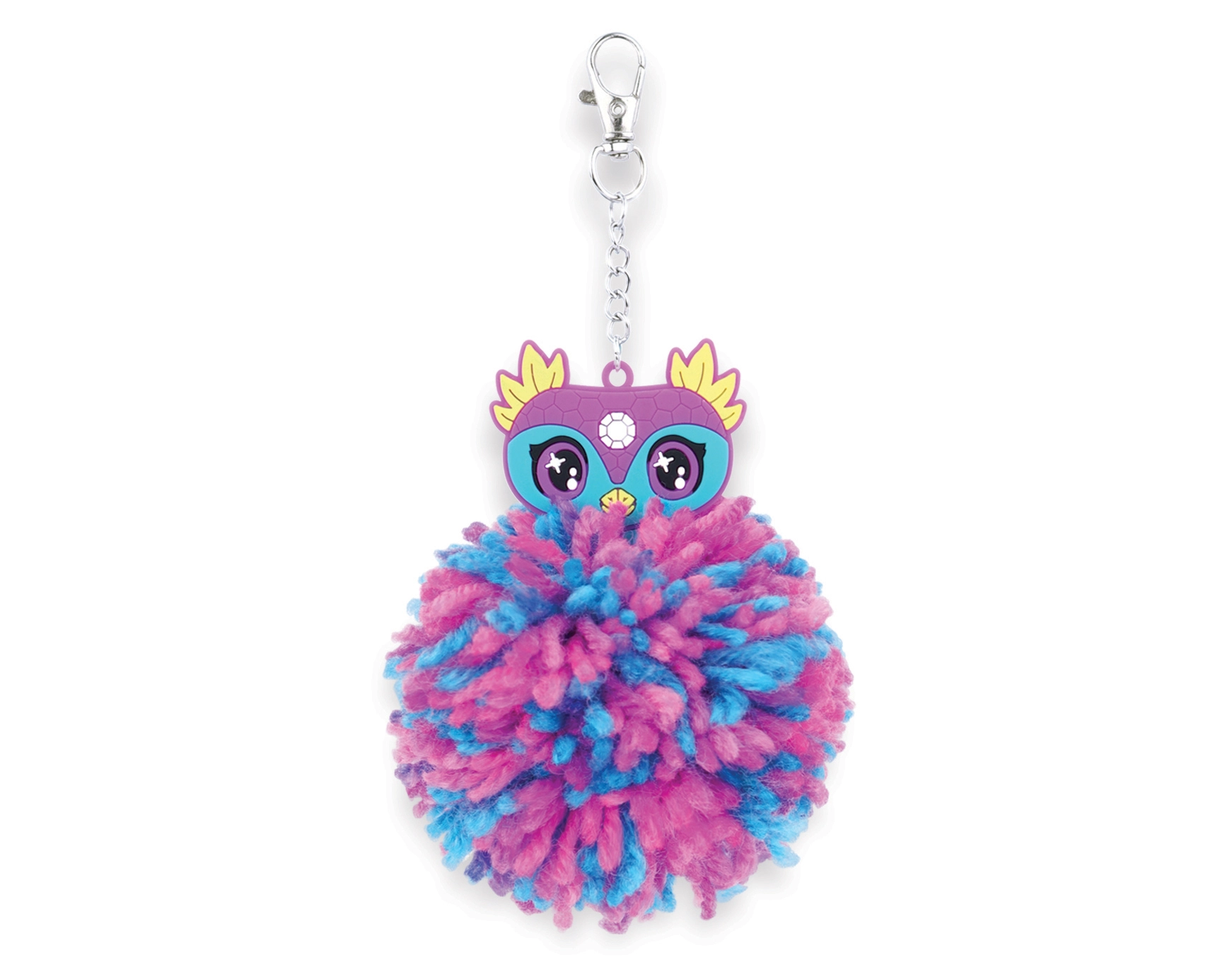 Fertige Pompons lassen sich mit dem Metallclip ganz einfach an Schlüssel, Taschen oder Rucksäcke befestigen. Das weiche Accessoire verleiht Ihren Sachen Farbe und einen individuellen Stil.