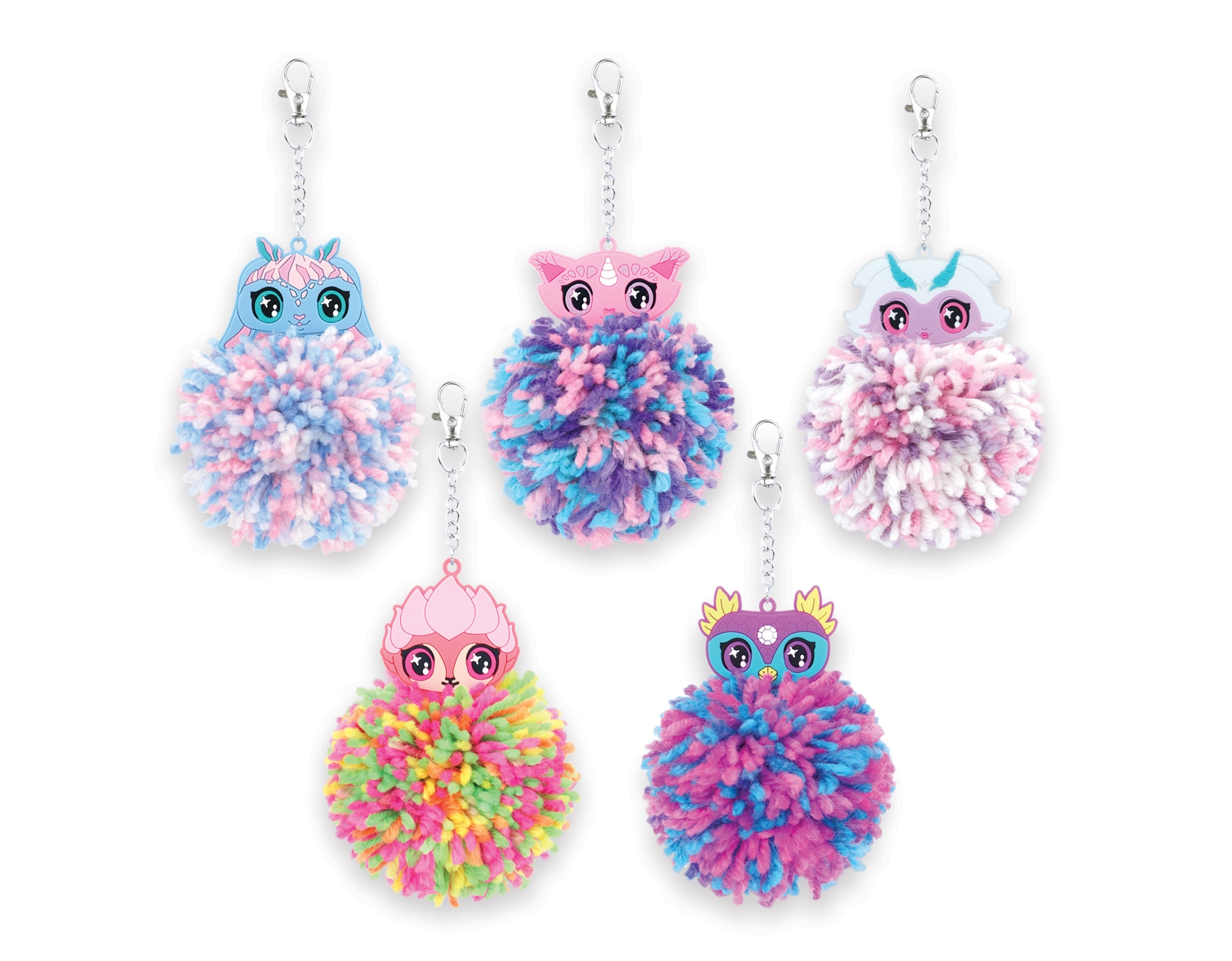 Mit diesem Kreativset stellen Kinder ganz leicht weiche Pompons her und verwandeln sie in individuelle Anhänger für Schlüssel oder den Rucksack. Dank des praktischen Werkzeugs und klarer Anweisungen ist das Basteln einfach, unterhaltsam und sicher.