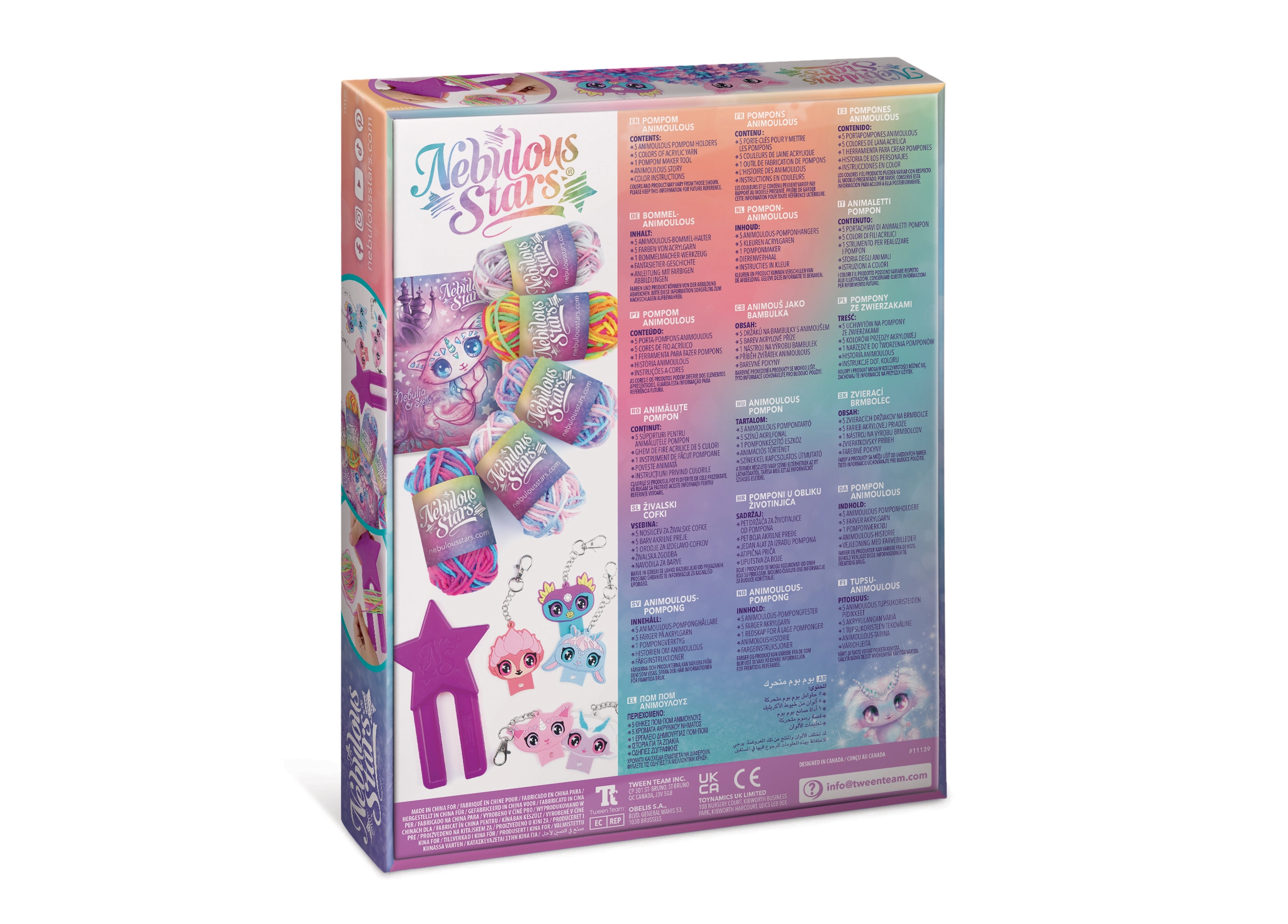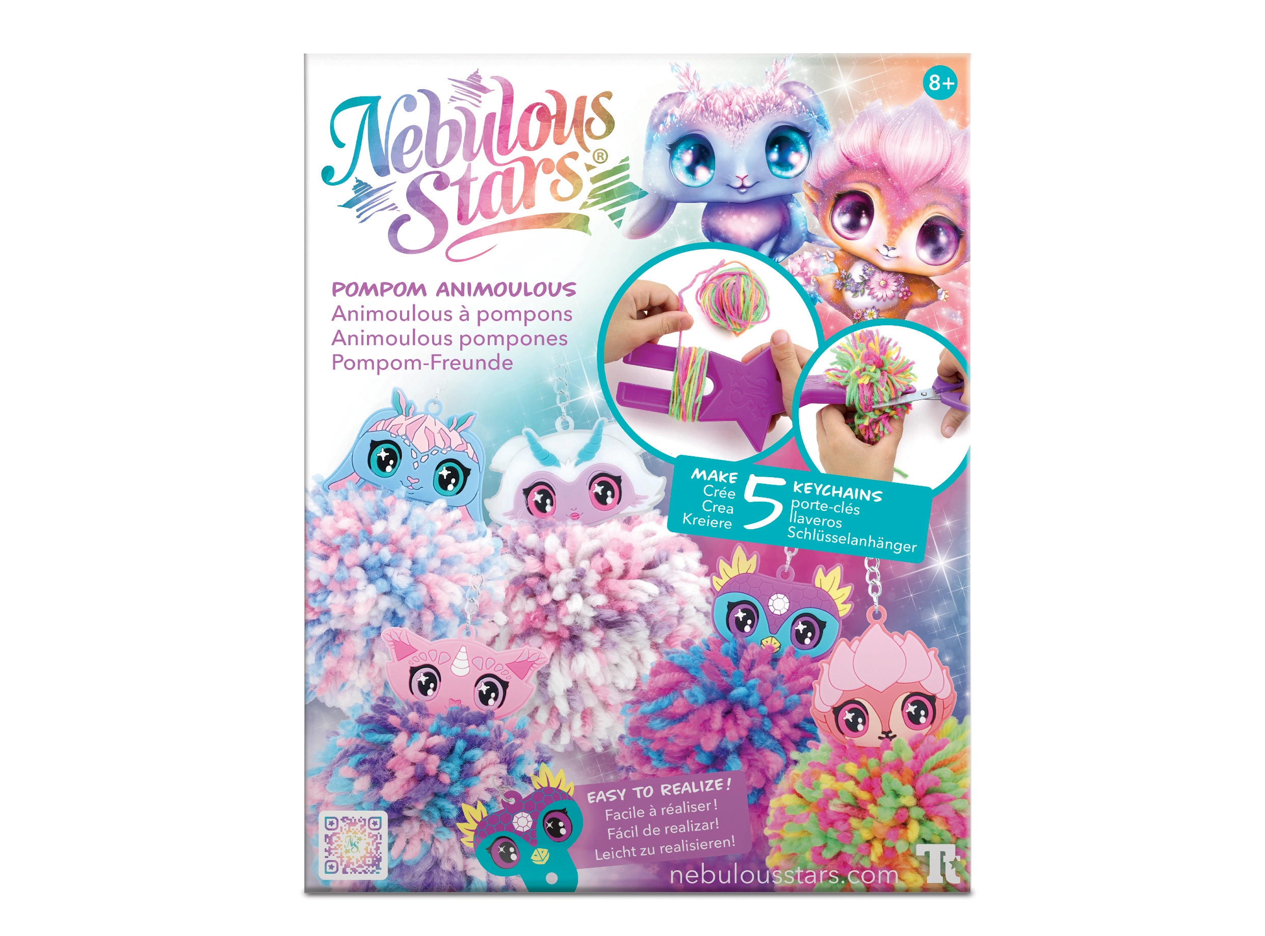 Das Paket enthält bunte Acrylgarne, 5 niedliche Halter mit Animousch und eine Tiergeschichte, die dem Basteln eine magische Atmosphäre verleiht. Das Ergebnis sind weiche, mehrfarbige Pompons mit Metallclip für einfaches Befestigen.