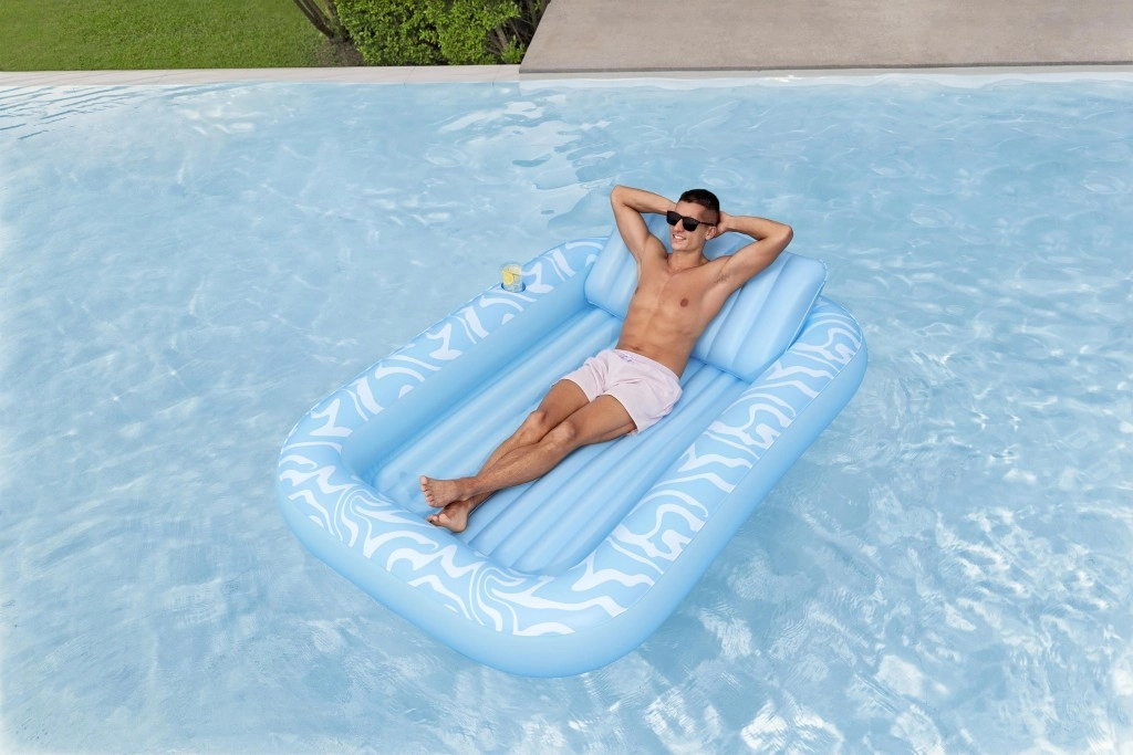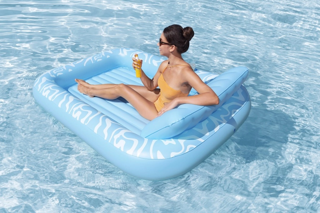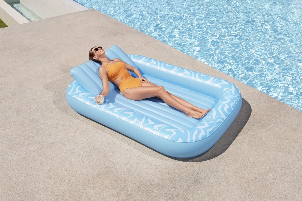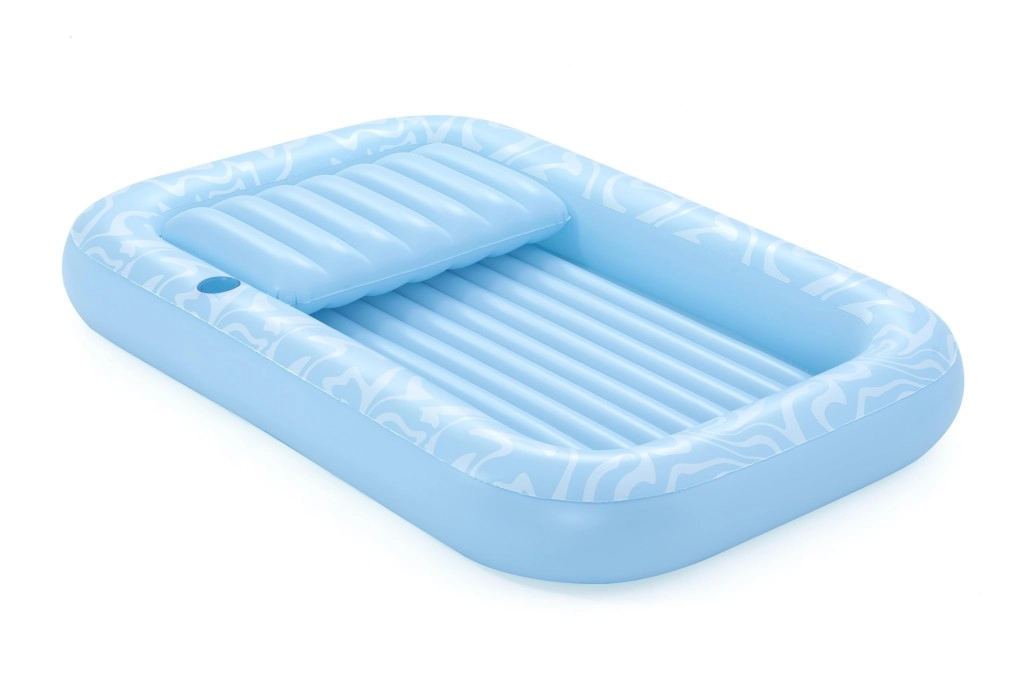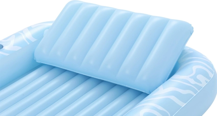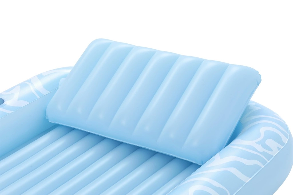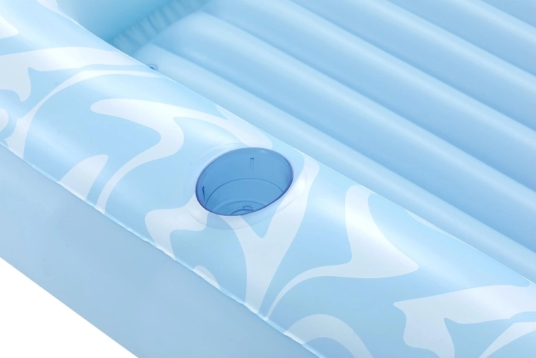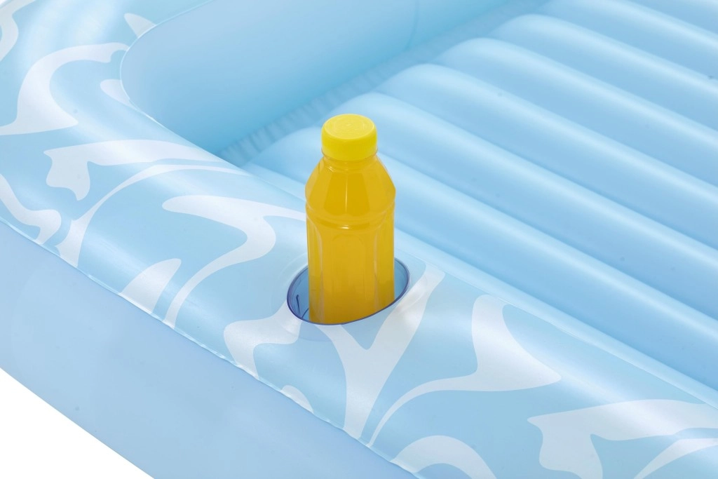 Genießen Sie einen unbeschwerten Sommer mit der geräumigen aufblasbaren Luftmatratze BESTWAY Sun-Kissed. Sie bietet eine große Liegefläche, eine integrierte Kopfstütze und einen Getränkehalter für maximalen Komfort im Wasser wie an Land. Die stabile I‑Beam‑Konstruktion und drei unabhängige Luftkammern sorgen für hervorragende Stabilität und Sicherheit, während das robuste Vinyl leicht zu reinigen ist und lange hält.