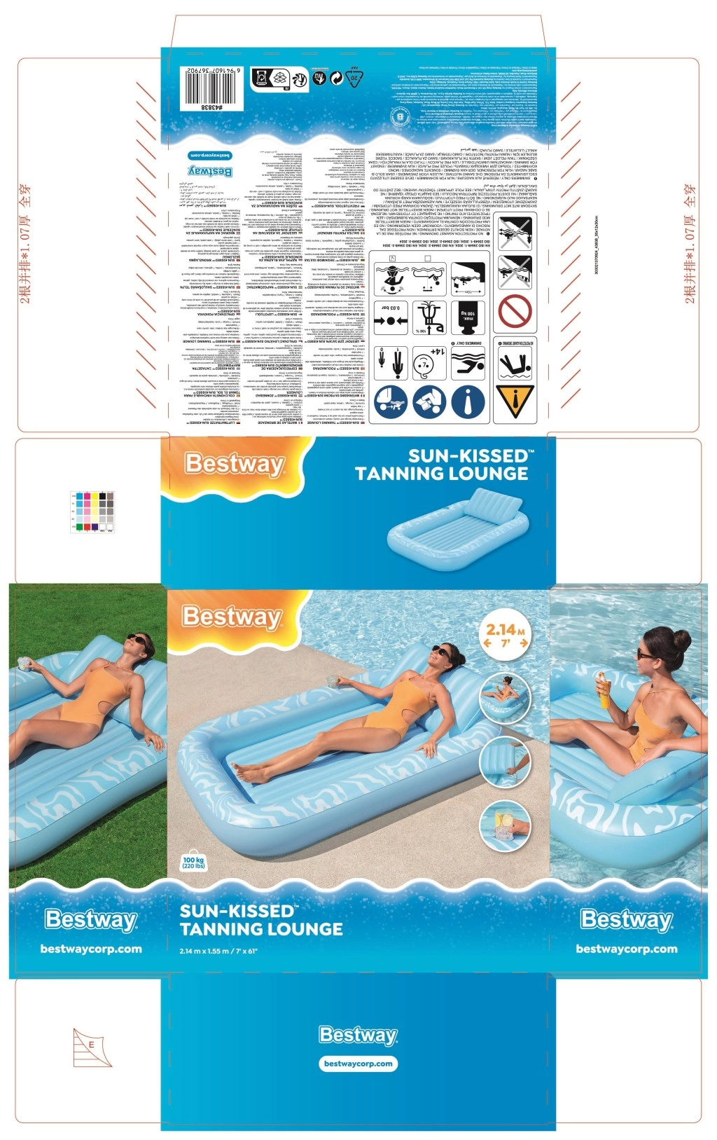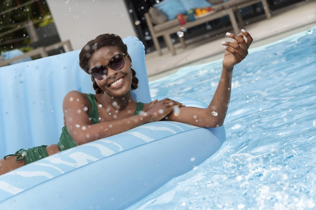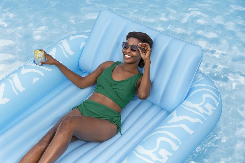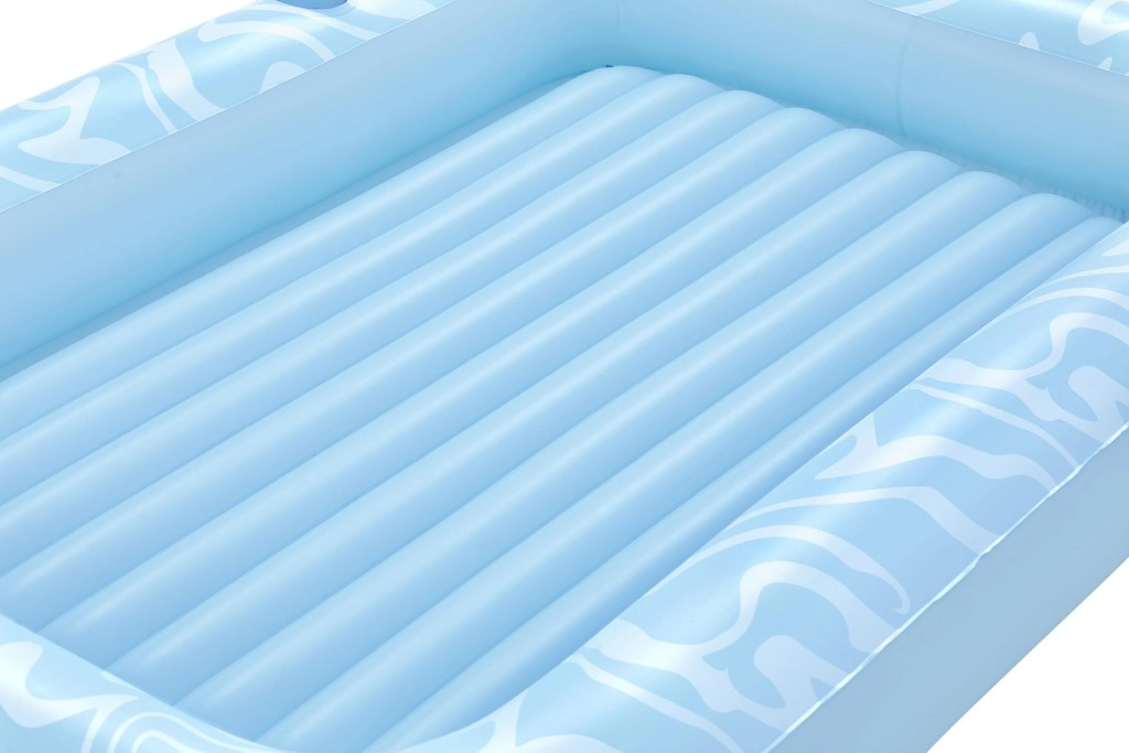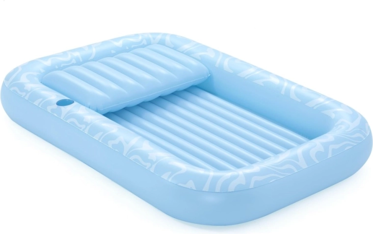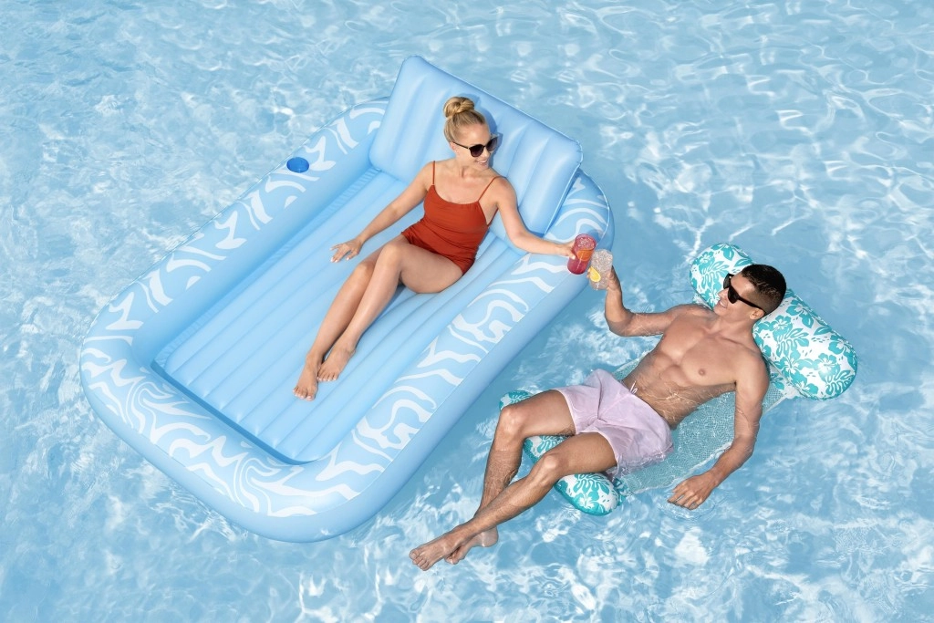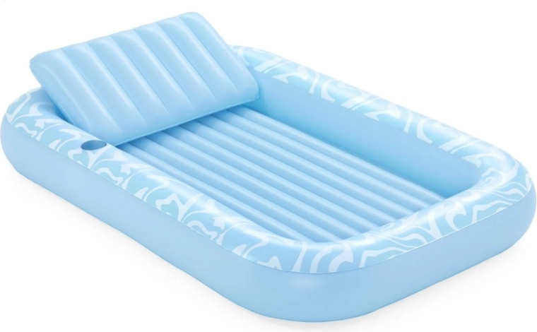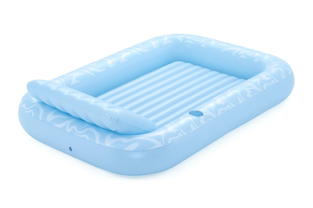 Genießen Sie einen unbeschwerten Sommer mit der geräumigen aufblasbaren Luftmatratze BESTWAY Sun-Kissed. Sie bietet eine große Liegefläche, eine integrierte Kopfstütze und einen Getränkehalter für maximalen Komfort im Wasser wie an Land. Die stabile I‑Beam‑Konstruktion und drei unabhängige Luftkammern sorgen für hervorragende Stabilität und Sicherheit, während das robuste Vinyl leicht zu reinigen ist und lange hält.