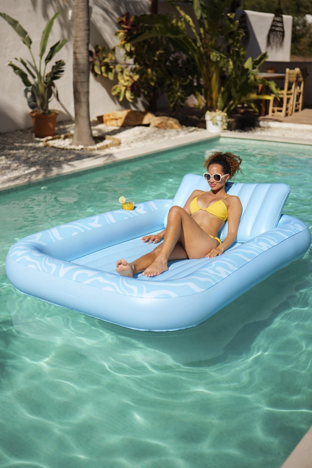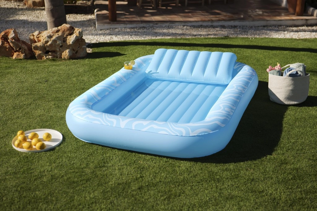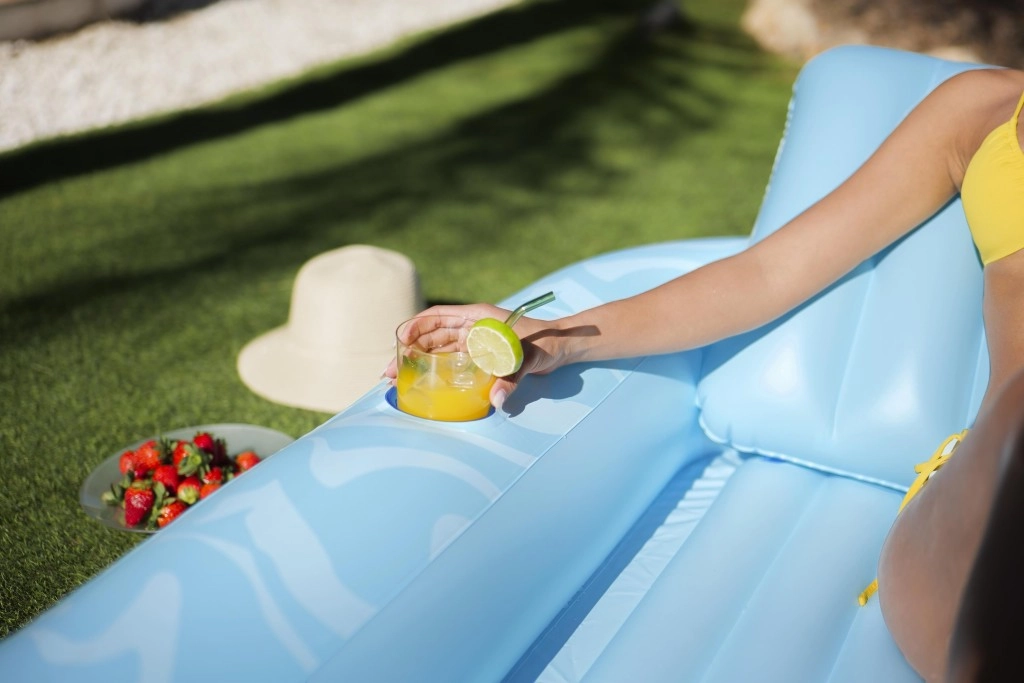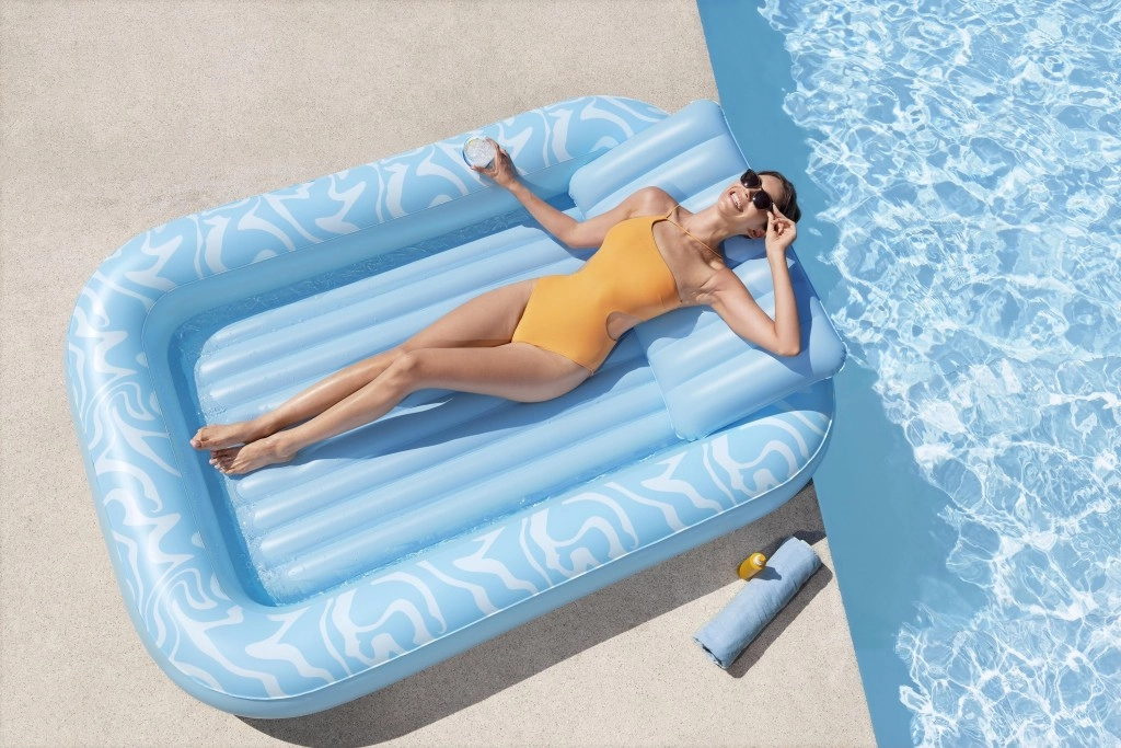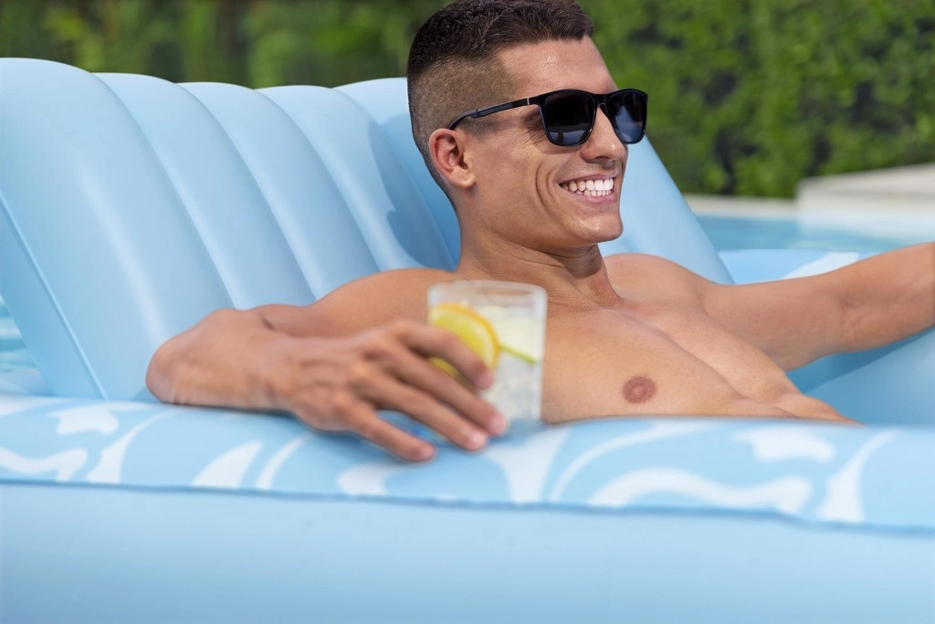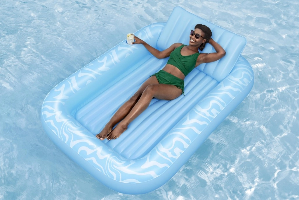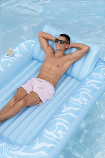 Die Luftmatratze Sun-Kissed ist für entspanntes Chillen am Pool und im Garten konzipiert. Die breite, konturierte Liegefläche mit Rippenpolsterung stützt den ganzen Körper angenehm, und die erhöhte Kopfstütze sorgt für Komfort beim Sonnenbaden oder Lesen. Dank des Getränkehalters haben Sie Ihren erfrischenden Drink immer zur Hand.