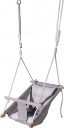 Die graue Farbe und das schlichte Design machen die Schaukel nicht nur zu einem Spielzeug, sondern auch zu einem stilvollen Element des Kinderzimmers.