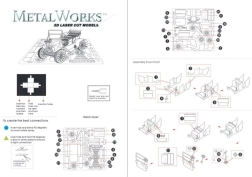 Die Verpackung enthält alle erforderlichen Teile, die vorsichtig aus den Metallblechen herausgetrennt werden müssen. Die Teile werden mittels Laschen verbunden – durch Umbiegen der kleinen Haken mit einer Zange (nicht im Lieferumfang enthalten) entsteht ein einzigartiges und realistisches Modell.