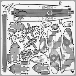 Die Montage erfolgt ohne Klebstoff – die Teile werden über Laschen (Nasen) und Öffnungen verbunden. Für mehr Komfort empfehlen wir feine Flachzangen und einen kleinen Seitenschneider (nicht enthalten). Im Lieferumfang enthalten ist 1 Stahlblech 11 × 11 cm mit herauslösbaren Teilen sowie eine übersichtliche Anleitung. Die Abmessungen des fertigen Modells betragen ca. 13,2 × 8,8 × 2,6 cm; der Schwierigkeitsgrad ist mittel bis fortgeschritten, geeignet ab 14 Jahren.
