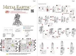 Der Bausatz enthält 2 Stahlblechplatinen (21 × 11 cm) sowie eine ausführliche, illustrierte Anleitung. Die einzelnen Teile werden aus den Platinen herausgedrückt und mit umgebogenen Laschen in Schlitze eingerastet – ganz ohne Klebstoff. Für ein angenehmeres Arbeiten empfehlen wir einen kleinen Seitenschneider/Schere und eine feine Flachzange (nicht enthalten). Das fertige Modell misst ca. 9 × 4,5 × 3 cm und ist ab 14 Jahren geeignet.