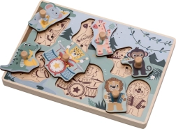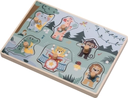 Entdeckt die Welt des Dschungels mit einem sicheren Holz-Steckpuzzle, das beim Einsetzen des richtigen Teils die Laute der einzelnen Tiere abspielt. Kinder üben spielerisch das Erkennen von Formen und lernen, Bild und Ton zu verknüpfen.