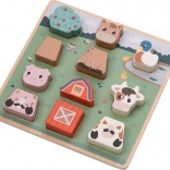 Dieses Holz-Steckpuzzle auf einer stabilen Grundplatte begeistert alle kleinen Tierfreunde. Beim Spielen lernen Kinder Formen und Farben zu erkennen, üben Geduld und logisches Denken und entwickeln dabei Feinmotorik sowie Hand-Auge-Koordination. Die Tiermotive lassen sich leicht in die Platte einsetzen und können auch einzeln im freien Spiel verwendet werden.
