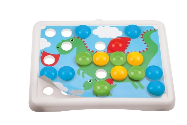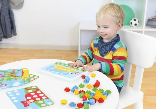 Dieses Mosaikspiel mit großen, glatten Steckknöpfen ist eine tolle Möglichkeit, Kinder spielerisch in ihrer Entwicklung zu unterstützen. Dank übersichtlicher Vorlagen und der gelochten Stecktafel lernen Kinder die Hand-Auge-Koordination, üben Geduld und entwickeln ihre Fantasie weiter. Die großen Teile liegen gut in der Hand und lassen sich sicher einsetzen.