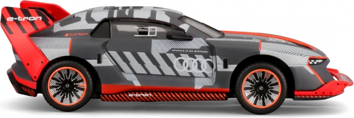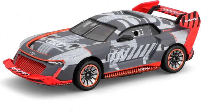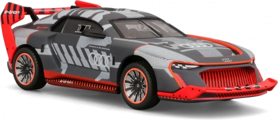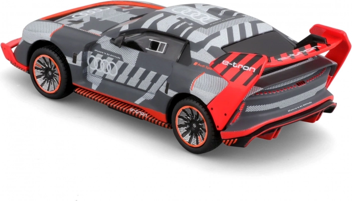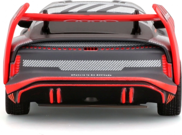 Sportliches Livery, großer Heckflügel und aerodynamische Linien verweisen authentisch auf den Rennwagen AUDI S1 e-tron quattro.