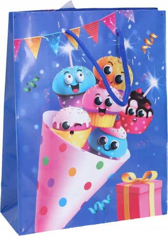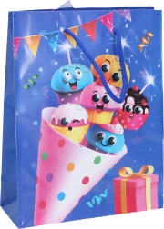 Niedliche Geschenktüte für Kinder in Größe S mit den Maßen 18 × 23 × 9 cm – ideal zum Verpacken kleiner Geschenke. Bietet einfaches und schnelles Verpacken ohne Schneiden und Kleben und eignet sich für Geburtstage, Feiertage und andere Anlässe. Erhältlich in 4 verschiedenen Designs.