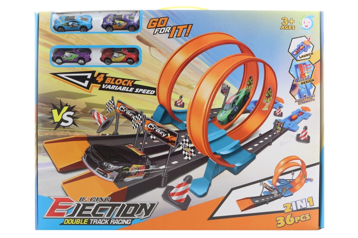 Eine großartige doppelte Kunststoff-Abschussbahn mit 4 Abschussstufen sorgt für jede Menge Spaß und Spannung. Im Lieferumfang sind 4 Metallautos enthalten, die langlebige Qualität und ein tolles Fahrgefühl gewährleisten. Diese Bahn ist ideal für Kinder ab 3 Jahren und lässt sich leicht zusammenbauen, sodass Kinder schnell mit dem Spielen beginnen können.