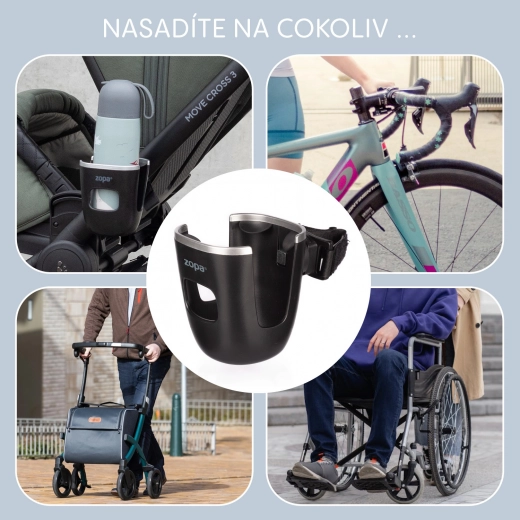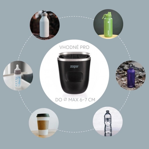 Der schwarze Becherhalter der Marke Zopa ist für eine einfache Montage an Kinderwagen konzipiert. Dieses funktionale und moderne Accessoire ermöglicht es Ihnen, während der Spaziergänge Ihr Getränk sicher zu halten.