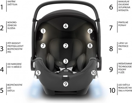 - Gedämpfte Innenbeleuchtung für einfaches Anschnallen des Kindes.