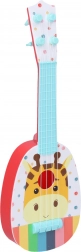 Diese Kindergitarre mit Motiv afrikanischer Tiere ist ideal für kleine Anfänger. Sie hat vier Kunststoffsaiten und eine Länge von 37 cm, was sie zur perfekten Wahl für einfaches Halten und Spielen macht.