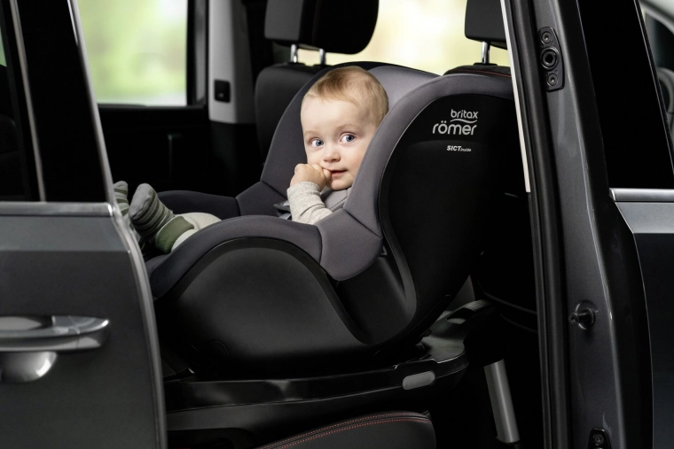 Entdecken Sie den sicheren und bequemen Kindersitz Dualfix mit drehbarer Flexi-Basis in elegantem Space Black. Ideal für lange Fahrten, erfüllt strenge i-Size Normen.