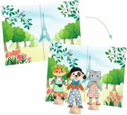 Mit Djeco Collage Bonjour Paris kleiden Kinder die Holzfiguren in stylische Outfits und erschaffen ihre eigenen Pariser Abenteuer. Robuste, wiederverwendbare Teile lassen sich leicht greifen, sitzen zuverlässig und laden zu endlosem Spiel ein – fördert Kreativität, Erzählen und Feinmotorik.