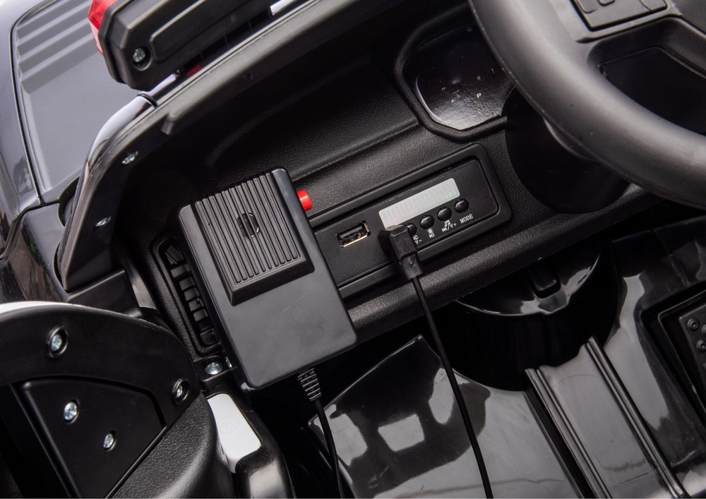 Kinder können ein echtes Fahrgefühl erleben, durch das funktionale Lenkrad und die entsprechenden Bedienelemente.