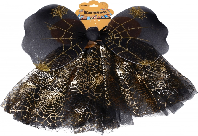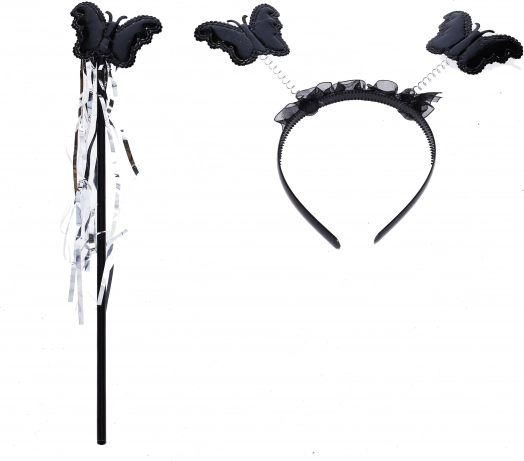 Stilvolles Karneval-Set für kleine Feen und Schmetterlinge in elegantem Schwarz. Enthält alles für eine schnelle Verwandlung: Flügel, Rock (Länge 29 cm), Zauberstab und Haarreif. Ideal für Karneval, Maskenball und Märchenkostüme.