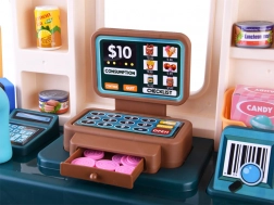 Das gesamte Set besteht aus Kunststoff in angenehmen, gedeckten Farben und umfasst 71 Zubehörteile, darunter Obst, Gemüse, Backwaren und viele weitere Artikel, was Kindern grenzenloses Spiel ermöglicht. Die Kasse hat eine Geldschublade und einen tragbaren Barcodescanner, der realistische Geräusche erzeugt – so wird das Spiel noch spannender.