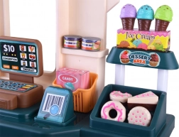 Das Set bietet realistische Elemente für ein fortgeschrittenes Kaufladen-Spiel. Kinder können den tragbaren Scanner verwenden und wie in einem echten Supermarkt an der Kasse anstehen.