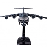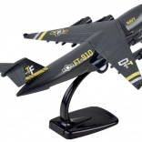 Das Modellflugzeug ist in Schwarz mit Details in Gold und Silber, die Authentizität und Stil verleihen.