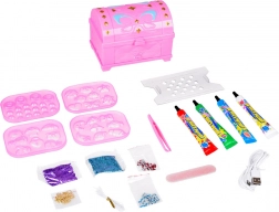 Möchten Sie eigenen einzigartigen Schmuck kreieren? Dieses Kreativ-Set ist ideal für Mädchen, die gerne eigene Designs erstellen. Es enthält eine rosa Schmuckschatulle mit stilvollem Design, das Ihrem Schmuck ein einzigartiges Aussehen verleiht.