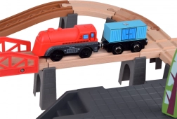 Das Netz von Gleisen umgibt die Stadt, was es Kindern ermöglicht, Routen zu planen und eigene Geschichten zu kreieren. Der bewegliche Zug kann Passagiere und Güter für realistische Spielszenen transportieren.