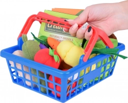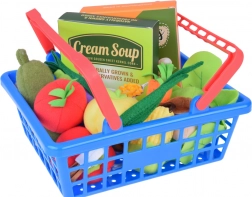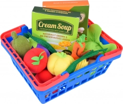 Spiel mit weichem Gemüse im Korb ist ein unterhaltsamer und inspirierender Weg für Kinder, um in die Welt des imaginären Einkaufens und gesunden Kochens einzutauchen.
