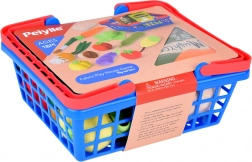 Der blau-rote Plastikkorb ergänzt das Spielset perfekt und bietet eine einfache Aufbewahrung aller Spielteile.
