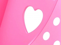 Die rosa Farbe mit weidfen Punkten und der herzff6rmige Ausschnitt verleihen dem Wagen ein modernes und ansprechendes Aussehen.<2p>
