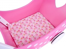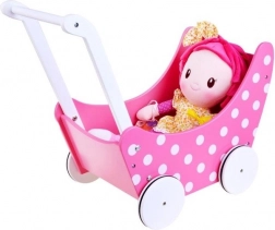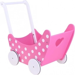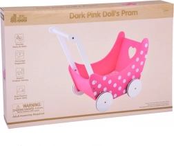 Bezaubernder Holzpuppenwagen, der jedes kleine Puppen-, Kuscheltier- und Spielzeugpflegerherz hf6her schlagen le4sst. Hergestellt aus hochwertigem Holz in zartem Rosa mit weidfen Punkten.