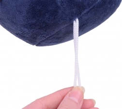An der Kopfoberseite der Puppe befindet sich eine Schlaufe, die eine Aufhängung im Zimmer ermöglicht.